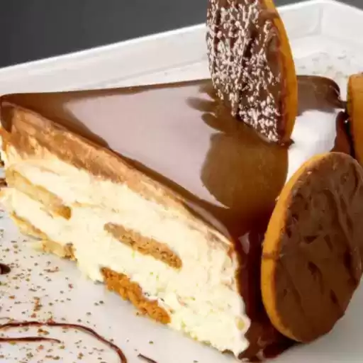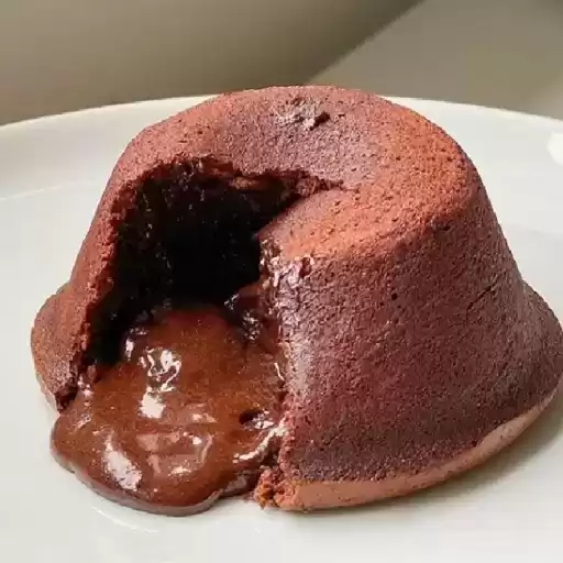 Petit gateau de chocolate com 2 bolas de sorvete de creme e cobertura de chocolate