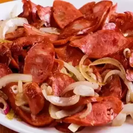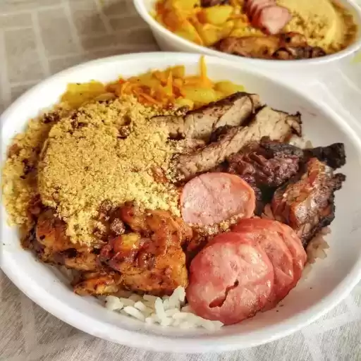 Arroz, Feijão, Fritas, Farofa, Frango e Linguiça.