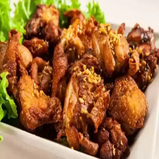 Cortes de coxa e sobrecoxa temperado e frito - Acompanha alho frito e molho da casa